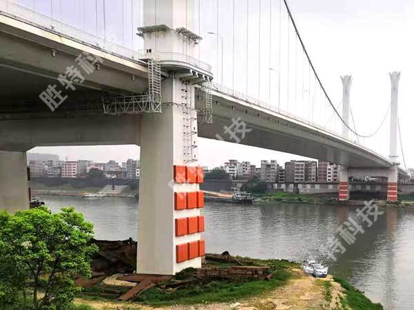 復合材料橋墩防撞裝置簡介該產品由衡水勝特科技有限公司研發制作生產,單元模塊化設計,外殼由優質柔性復合材料制作,內部則由耗能材料填充,是一種附著在大橋橋墩、承臺上的新型防護裝置。整套裝置消能耗能效果好,防...